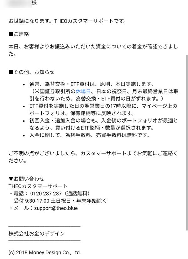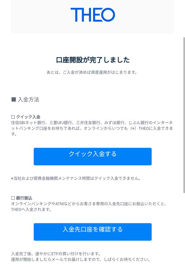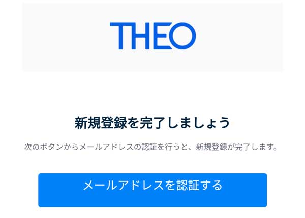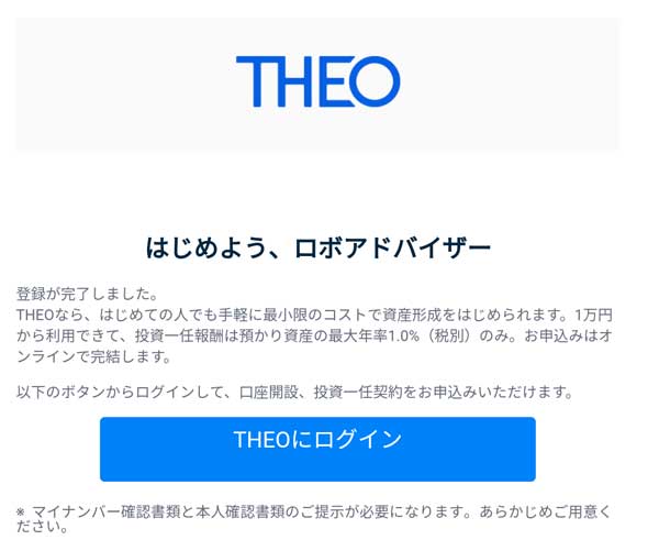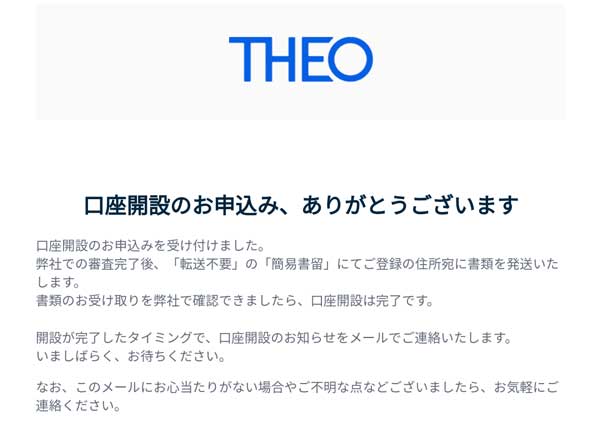THEOからメールが届きました(口座開設完了)