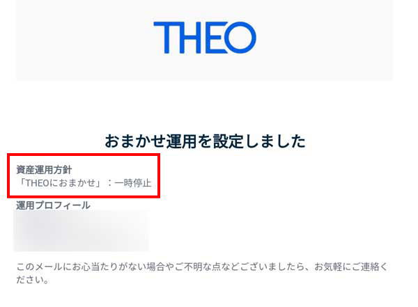 THEOにおまかせを一時停止して自分で設定した資産運用方針