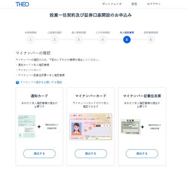 あと、僕もTHEOの口座開設をして、初期投資100万円+毎月1万円積立を始めていますが、THEOに限らず証券会社の口座開設って必要書類(本人確認書類・マイナンバーなど)を用意したりするのが面倒なんですよねー(THEOの口座開設は本人確認書類等を郵送ではなくWEBからアップロードすればいいので楽ですが)。