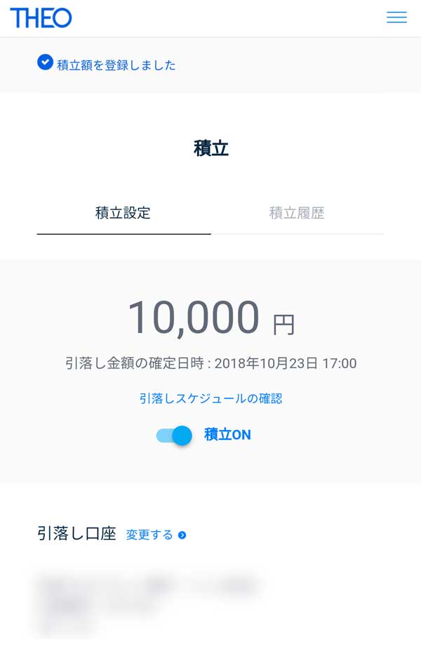 THEO[テオ]の口座開設が完了した10月21日(日)の翌々日、10月23日(火)から早速、THEOでの資産運用を始めました!