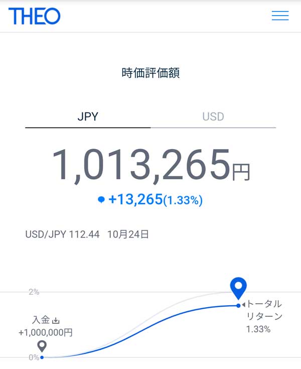 初期投資100万円+毎月1万円積立でTHEOをはじめました