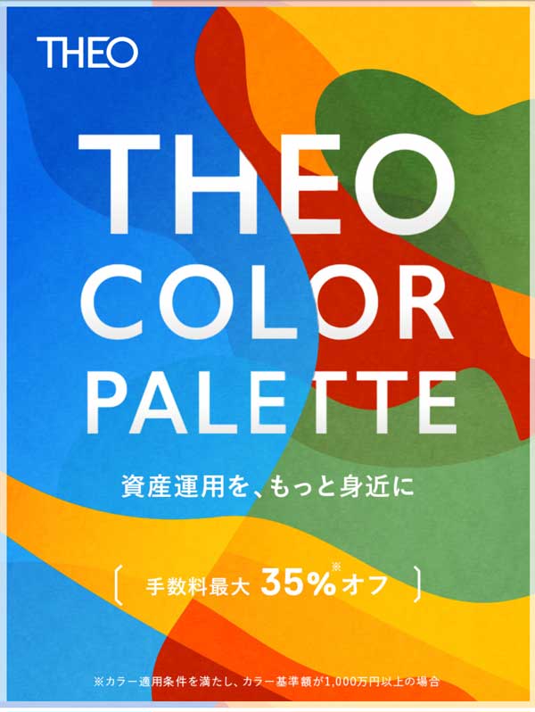 また3,000万円超の方はTHEO Color Palette(テオ カラーパレット)対象外で従来通り0.5%(税別)の手数料となっています。
