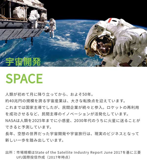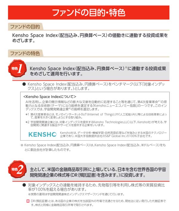 日本を含む世界各国の宇宙開発関連企業の株式等の指数、Kensho Space Index(配当込み:円換算ベース)に連動 |