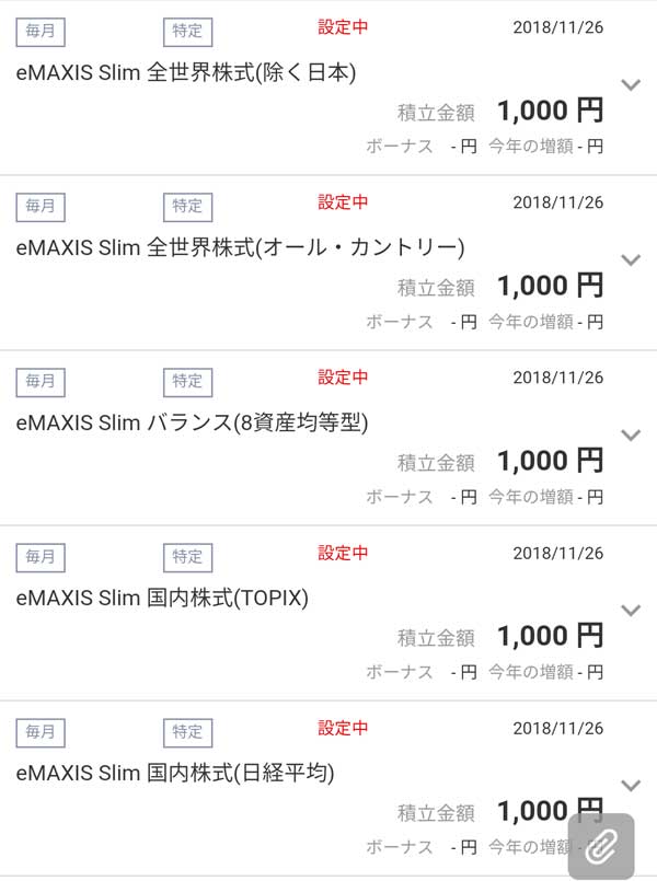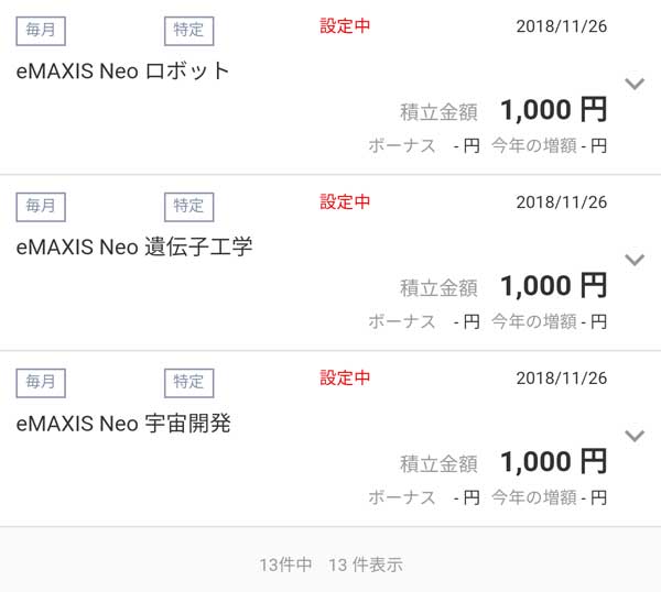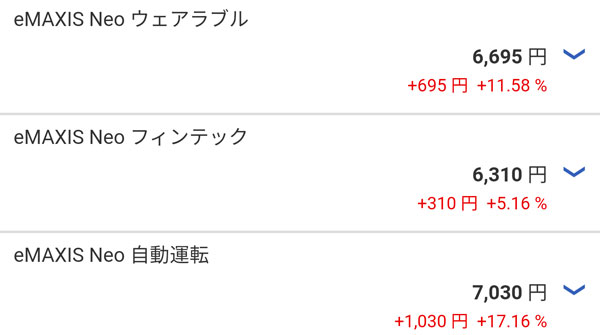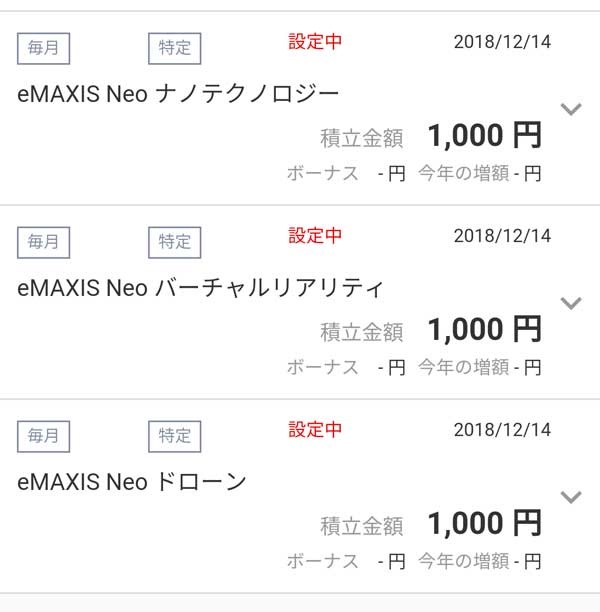 | 毎月1,000円投信積立しているeMAXIS Neoシリーズ