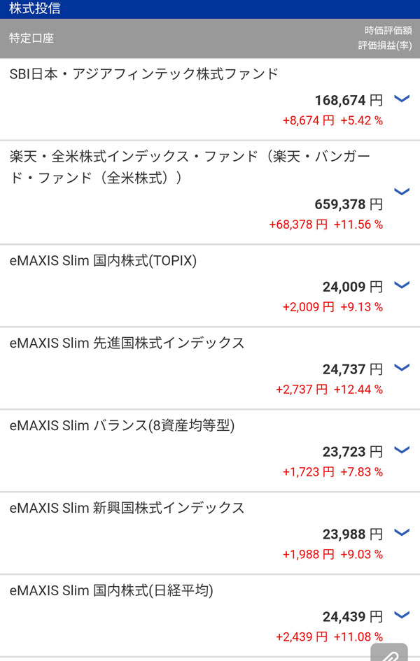 ※SBI日本・アジアフィンテック株式ファンドは、楽天ポイントで投信積立(毎月1万ポイント)しているものです。