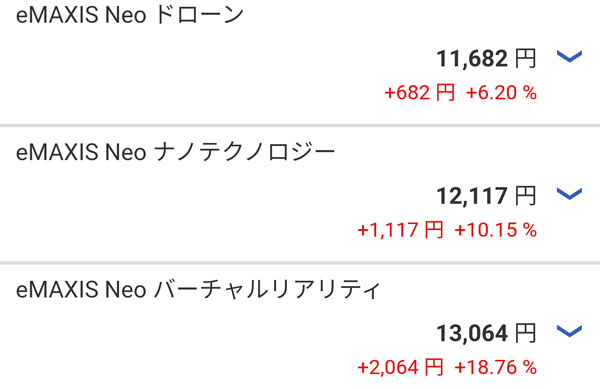 2018年12月3日に「バーチャルリアリティ・ナノテクノロジー・ドローン」のeMAXIS・Neoシリーズ3本が販売開始されたので、2019年2月分からこの3本を投信積立に追加。