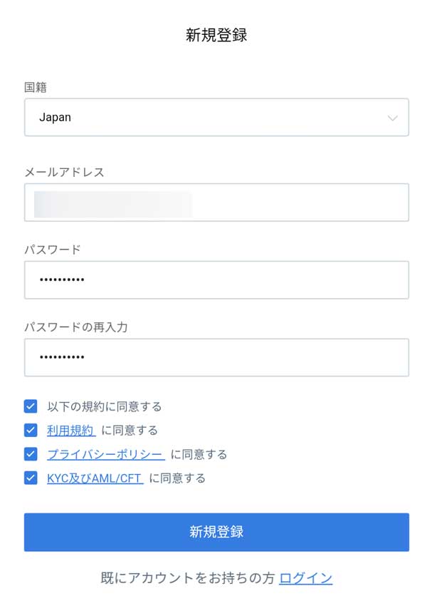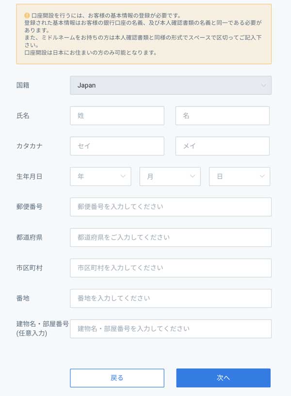 新規口座登録申込みは下記の通りで、10分もあれば申し込みは完了します。