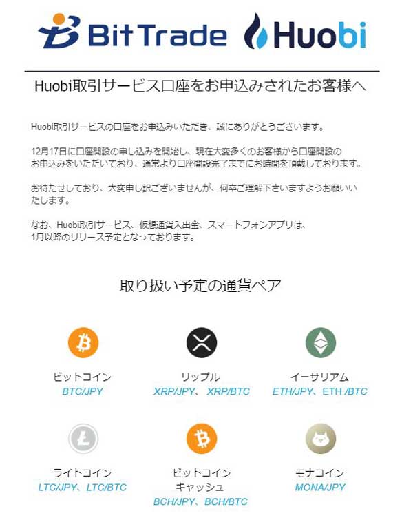 | Huobi新規口座開設受付開始 | 2018年12月10日 | ||||