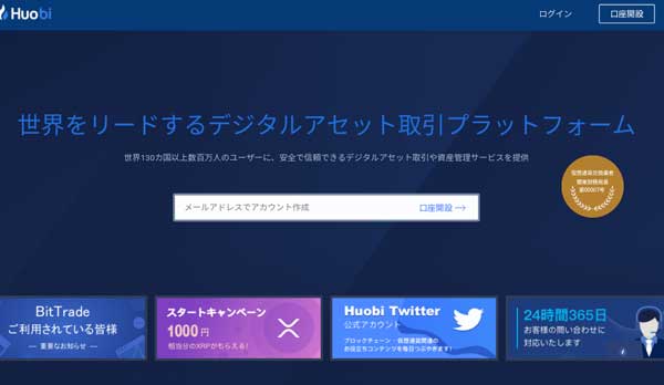 Huobi(フォビ)は2019年1月8日(火)から仮想通貨取引を開始し、お得なXRPが貰えるスタートキャンペーンも行われました(すでに終了)。