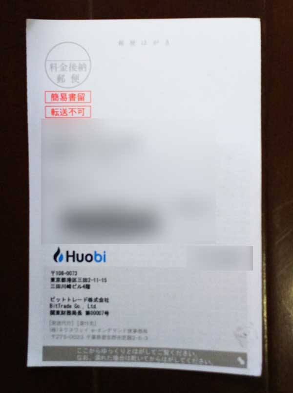 2019年1月7日(月)までに口座登録が完了しなければ1,000円相当分のXRP(リップル)が貰えるスタートアップキャンペーンには間に合わないのですが、口座開設完了の簡易ハガキが到着したのが新規口座登録に申し込んだ2018年12月20日(木)から3週間以上たった1月14日(月)でした(簡易ハガキは本人以外でも受取可能)。。