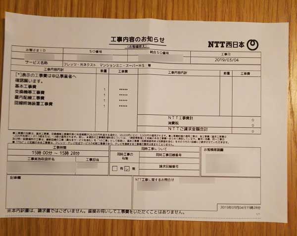 ⑥2019年3月4日(月)に開通工事⇒インターネット設定をして利用開始!