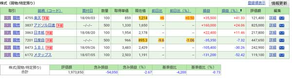 上記のトータルリターンは過去の取引(売却済)も含めたものですが、日本株だけは一時細かく取引してたので正確な損益が分かりません(^^;)。多分少しマイナスくらいかな?