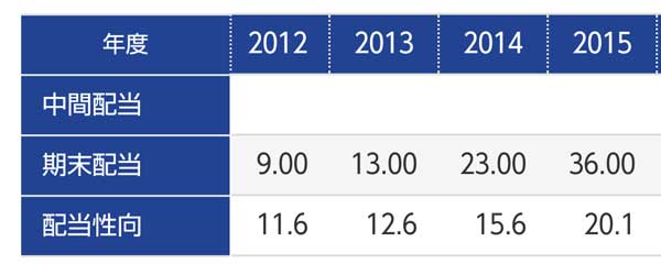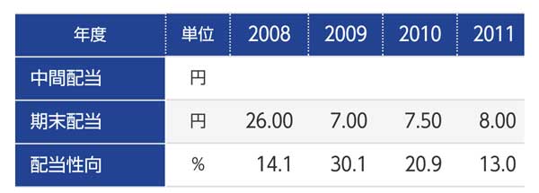 | 年 | 中間配当 | 期末配当 | 配当性向 | ||