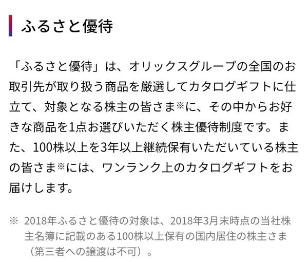 | (8591)オリックス(株)の株主優待(ふるさと優待) | |||||