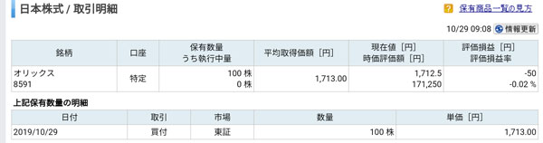 2019年10月28日(月)から楽天スーパーポイントで国内株が購入ができるようになったのでサービス開始翌日10/29(火)に楽天スーパーポイント7万pt+現金でオリックス(8591)を100株買付ました!