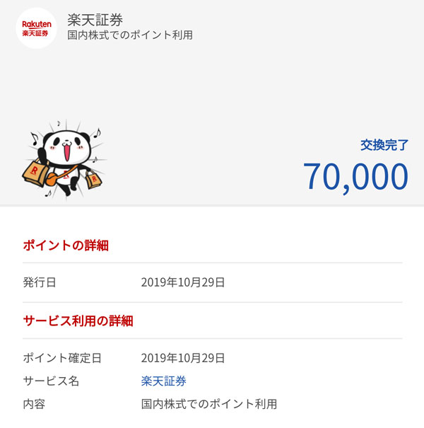 | ポイント利用確定日 | 2019/10/29(火) | ||||