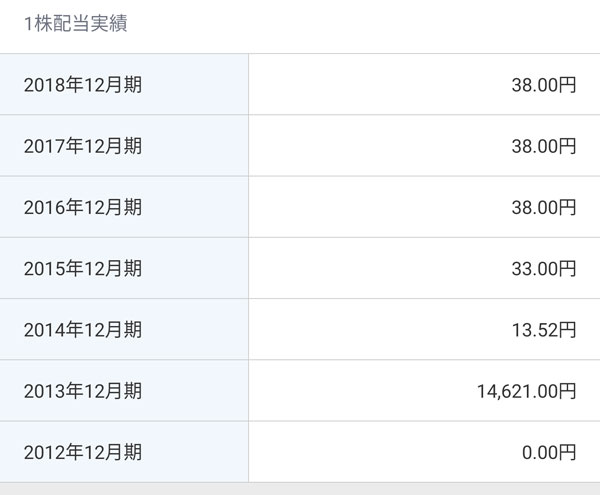 すかいらーくHD(3197)の配当金、配当利回りは以下の通りで2019年に普通に減配しました(^^;)