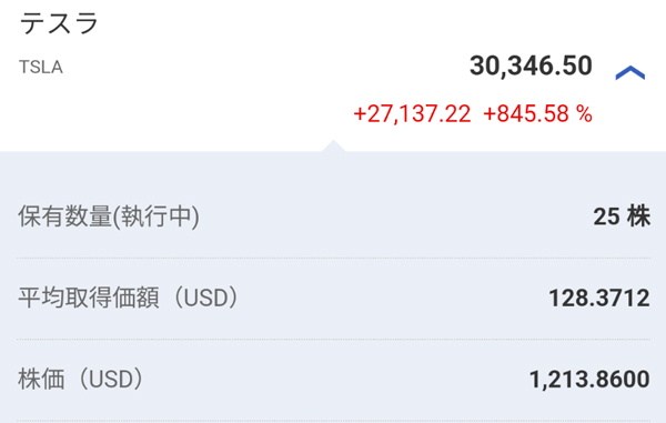 テスラ(TSLA)を5株買って+5株買い増し(株式分割で50株)!