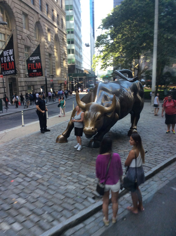 2014年ニューヨークに行ったときバスツアーでニューヨーク証券取引所を通った時に撮影したチャージング・ブル