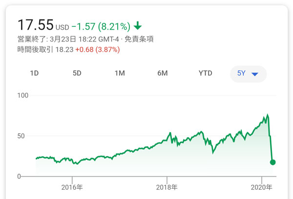| 2020/3/23(月) | 100株 | 18.30 USD | |||