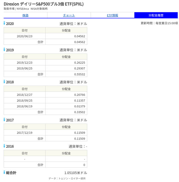 配当目当てでSPXL買ってる奴なんていないだろうけど配当でれば嬉しい♪