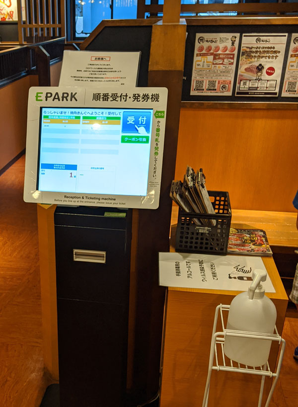 他の店舗は分からないけど焼肉きんぐ岡山大供店の場合、満席の場合は発券機で受付します(予約すればポイント貯まるからホットペッパー経由等での予約がオススメ)。