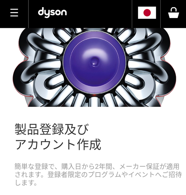 新品購入から2年以内にダイソン公式サイトの製品保証登録ページから製品保障登録をしておきましょう。