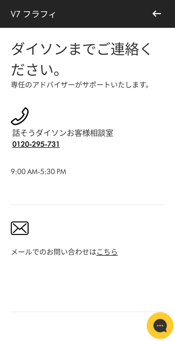 購入から2年以内にダイソン公式サイトのオンラインサポートヘ連絡。