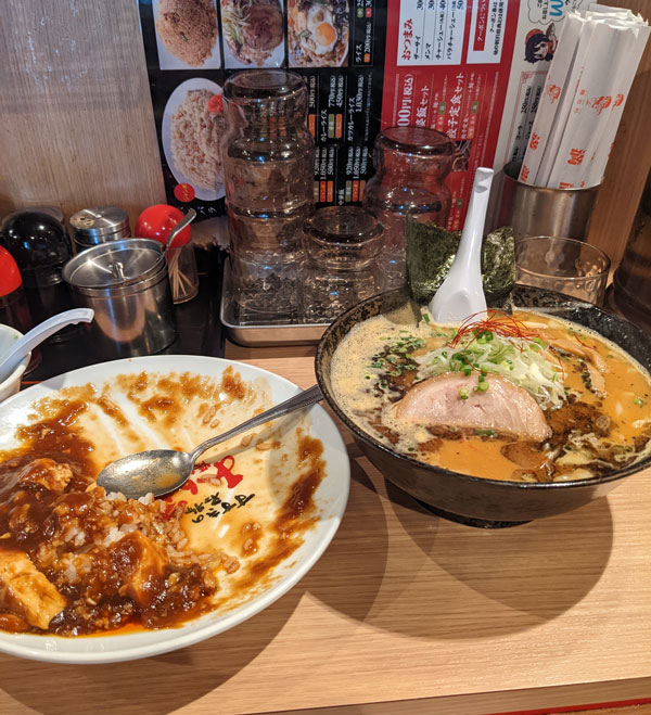 マラソン前日の夕飯はホテルから近い満龍でマーボー飯&焦がし味噌ラーメン