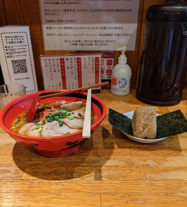 マラソン後に行きたかった一幻ラーメン(総本店)でエビみそラーメン&エビおにぎり(約40分待った)