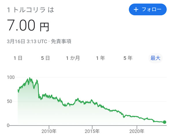 通貨(トルコリラ)が安くなれば輸出企業にとっては追い風だけど、過度の通貨安は輸入コストが上がり⇒(ハイパー)インフレ⇒個人消費鈍化⇒経済停滞となります。